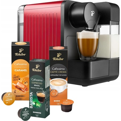 KAPSLOVÝ KÁVOVAR TCHIBO CAFISSIMO MILK 15 BAR Výrobce : Tchibo Typ: kapslový kávovar s napěňovačem mléka Rozměry: výška 250 mm; šířka 180 mm; hloubka 315 mm Hmotnost: cca 4,8 kg Barva: červená Kompatibilní s kapslemi Tchibo Cafissimo Expres pro každého! Neradi...