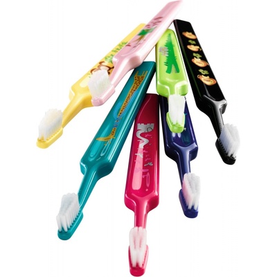 Oblíbené veselé zubní kartáčky. Malá hlavice snadno dosáhne do všech těžko dostupných ploch a extra měkká vlákna jsou velmi šetrná k dásním. Kartáček má malou, trojúhelníkovou...