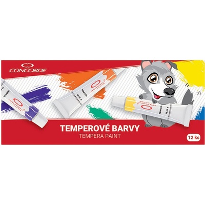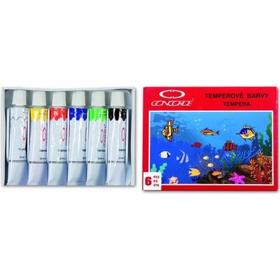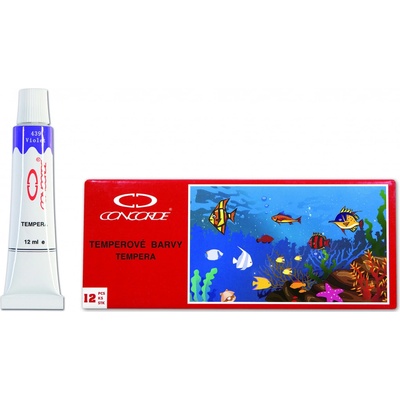 Temperové barvy CONCORDE 12ml - 12ks A65329. Sada 12-ti temperových barev v kovové tubě. Barvy jsou ředitelné vodou, vzájemně se dobře mísí, po zaschnutí je lze snadno rozmýt. Jsou snadno omyvatelné a vypratelné z většiny textilií. Obsah tuby 12ml.Upozornění: "Není...