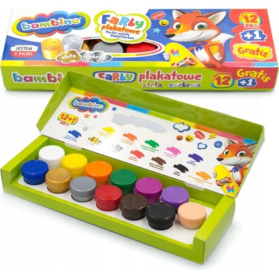 Plakátové barvy Bambino jsou barvy s čistými a sytými barvami. Lze je používat bez vody a na podkladu se nesráží. Po zaschnutí je barva matná, barvy intenzivní, světlostálé a...