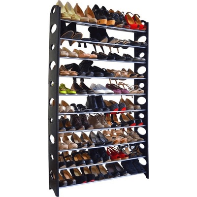 Provedení: Praktický botník se svým jednoduchým designem hodí do každé předsíně. Boty si můžete uložit do několika řad. Botník je určen až pro 50 párů bot. Barevné provedení černé.