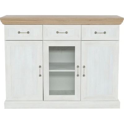 Provedení: Třídveřová komoda - dvoje plná a jedna prosklená dvířka - se třemi zásuvkami z kompletu ROYAL. Elegantní nábytkový systém ROYAL v anglickém stylu je vhodný na zařízení obývacích pokojů, jídelen a ložnic. Díky němu si snadno vytvoříte sestavu nábytku podle...