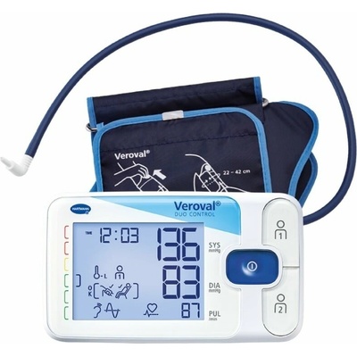 Automatický digitální tlakoměr na paži Veroval umožňuje snadné a rychlé měření systolického a diastolického tlaku. Přístroj dokáže odděleně ukládat naměřená data pro dvě osoby.