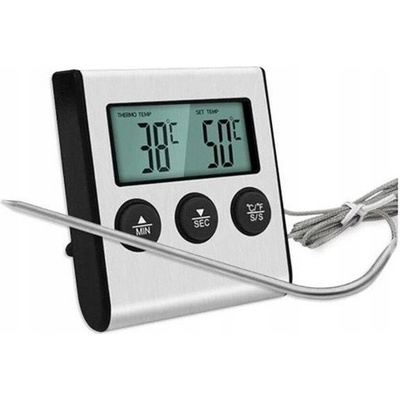 Teploměr s sondou pro pečení uzení 0C – 250C Snadno ovladatelný elektronický teploměr pro kontrolu teploty při vaření, uzení a pečení masa a při přípravě dalších pokrmů....