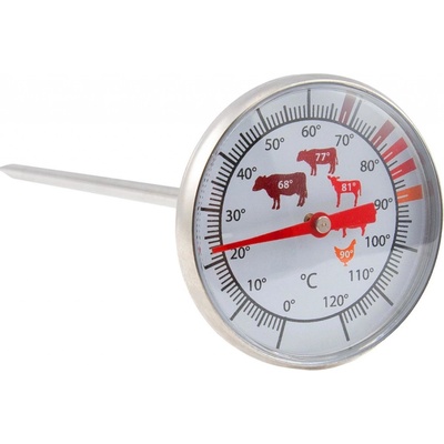Teploměr na měření teploty uvnitř masa při jeho tepelné úpravě zaručí, že bude maso zdravě propečené a připravené při správné teplotě. Ukazatel teploty cca od 0 °C do 120 °C....