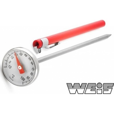 Vysoce kvalitní teploměr na maso od značky Weis je vyroben z nerezu a má teplotní rozsah od 0 do 100°C. Kromě toho je dodáván s hygienickým obalem a jeho rozměry jsou průměr 3...