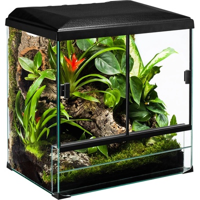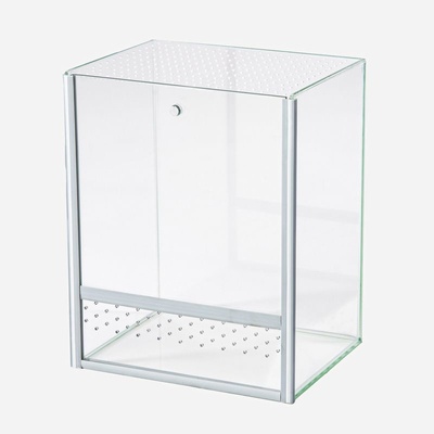 Skleněné terárium s černou větrací síťkou – Styl, bezpečnost a funkčnost v jednom Moderní skleněné terárium s praktickými posuvnými dveřmi, integrovaným zámkem a dvojitou...