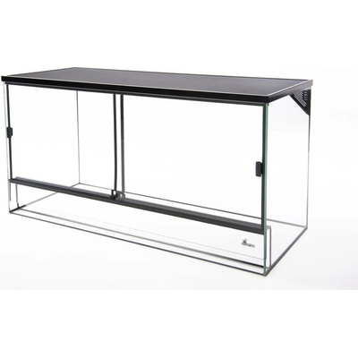 - skleněné terárium - síla skla 6mm - rozměry v pořadí délka x šířka x výška - hliníková větrací mřížka vepředu v rampě a ve stropě uprostřed - šoupací dvířka v plastových...