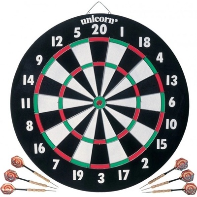 Dřevěný nástěnný terč se 6 šipkami s kovovými hroty (tři zelené a tři červené). Závěs je v horní části terče, aby mohl být použit oboustranně. Terč umístěte na takovou stěnu,...