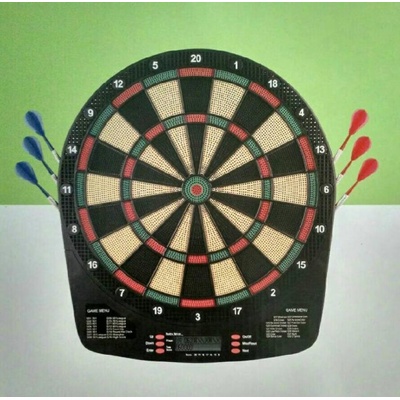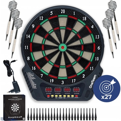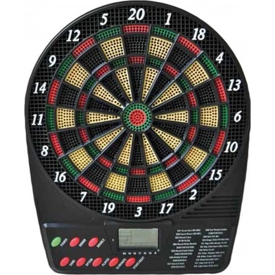 Elektronický terč pro 8 hráčů, 27 her a 202 herních variant, 2x LED automatický displej, napájecí adaptér, automatické bodování, zvukové efekty, automatické vypnutí, budící...