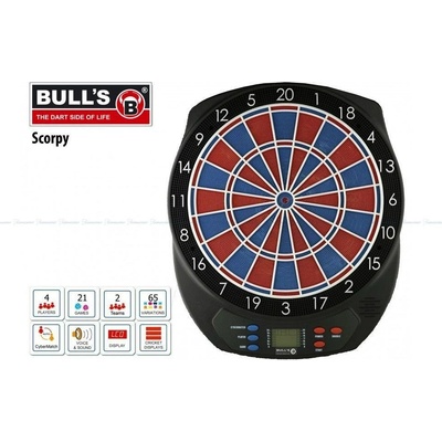 Bull's - elektronický terč Scorpy II New - dvouřádkové segmenty Nástěnný terč od firmy Bulls pro 1-4 hráče nebo 2 týmy, má 21 her a přes 65 variant s automatickým...