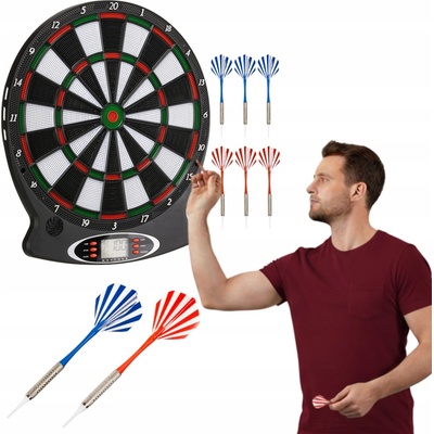 Elektronický terč digitální o průměru 30cm obsahuje 6 šipek. Terč je na baterie se zvukem obsahuje počítač. Vhodné od 3 let. VLASTNOSTI VÝROBKU - LCD display - Modré LCD...
