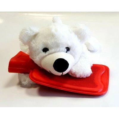 Termofor slouží k místnímu ohřívání těla. Obal tvoří plyšové zvířátko. Uvnitř je uložena zahřívací láhev.