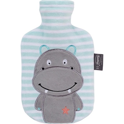 Dětský malý termofor s hrošíkem v tyrkysové barvě z příjemného materiálu.