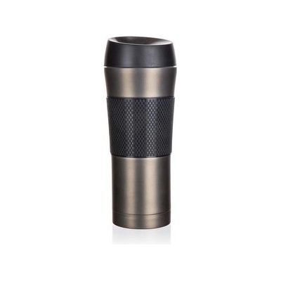 \nCestovní hrnek AKCENT dvoustěnný, je vhodný na teplé i studené nápoje. Vnější část z nerezi 201 v kombinaci s černým silikonovým rukávem a vnitřní část z nerezi 304....