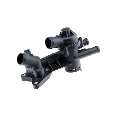 skříň regulátoru chladicí kapaliny s termostatem pro vozidla s motory 1.2TSI 63kW/77kW (CBZA, CBZB), náhradní díl určený pro vozy Škoda Fabia 2, Octavia 2, Yeti, Roomster, Rapid, možná označení tohoto dílu: 03F121111A