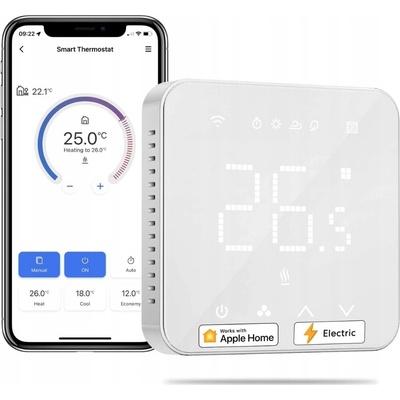 Technická specifikace:Protokol: Wi-Fi IEEE 802.11b/g/nFrekvence: 2,4GHzMaximální RF výstupní výkon: WiFi: 20dBmJmenovité provozní napětí: AC 100-230VSíťové pohotovostní napájení (Pnet): 1,5WProvozní zatížení: 16A (elektrické podlahové topení)Externí teplotní čidlo:...
