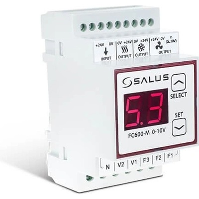 Modul SALUS FC600-M 0-10V je určen pro fan-coilové jednotky řízené signálem 0…10V. Je doplněním hlavního termostatu SALUS FC600. Modul plynule nastavuje otáčky ventilátoru...