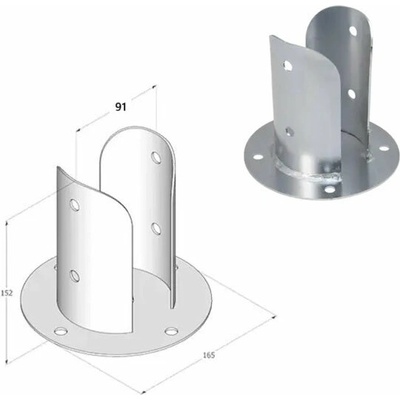 Domax šroubovací patka sloupku s kulatou základnou (ZNG) PSPOD 90 - 91 x 150 x 165 x 2.0 mm