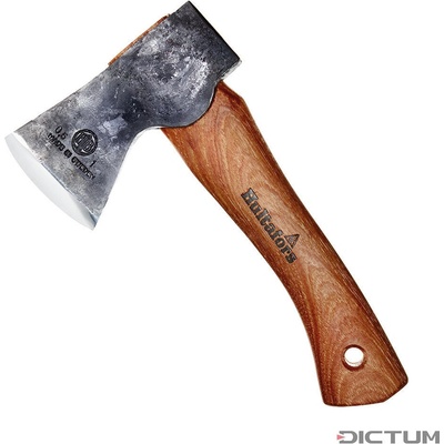 Tato malá sekerka má těžkou hlavu a krátkou rukojeť. Ideální do batohu při trekkingových aktivitách. Kovaná na tvrdost 56-57 HRC z uhlíkové oceli. Rukojeť ze dřeva Hickory...