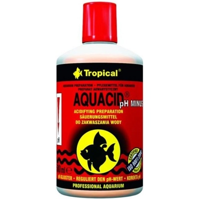 TROPICAL AQUACID pH MINUS je určen k okyselení akvarijní vody. Snižuje reakci vody (pH) a její uhličitanovou tvrdost (KH), podporuje tření ryb, zlepšuje jejich životní podmínky...