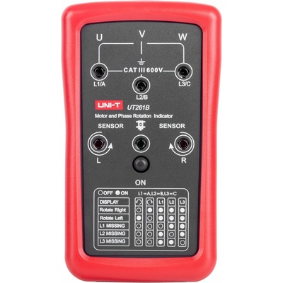 Tester rotace fází a indikátor otáček motoru UNI-T UT261B Na tento výrobek poskytujeme 3 roky záruku. UT261B se používá k určení sledu fází, chybějící fáze a otáčení motoru....