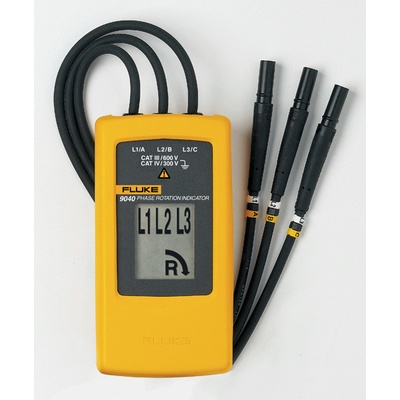 Fluke 9040/EUR - Tester sledu fází Tester sledu fází Fluke 9040 je tester pro zjištění pořadí fází třífázové soustavy. Vlastnosti Fluk 9040: Indikace fáze a sledu fází: LCD displej Jmenovité napětí: 40...700 V Kmitočtový rozsah: 15...400 Hz Odběr proudu: < 1 mA (při...