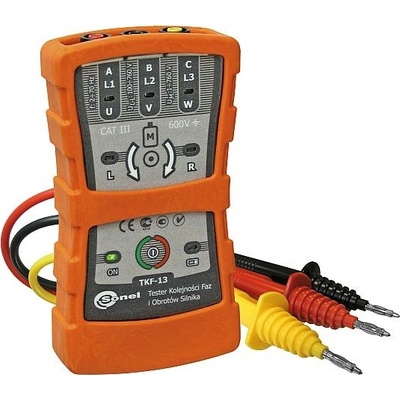 Sonel TKF-13 - Tester sledu fází TKF 13 je vysoce kvalitní, jednoduché a bezpečné zařízení pro indikaci sledu fází, přítomnosti napětí v jednotlivých fázích, určení směru...