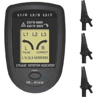 LUTRON RT-616 - tester sledu fází, Indikace chybějící fáze.100 - 660V, 45 až 70Hz. CAT IV 300 V / CAT III 600 V Napájení pomocí 9V baterie rozměry: 100 x 50 x 25 mm hmotnost:...