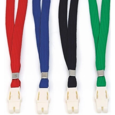 - pásek na krk vhodný k identifikátoru či klíčů na konci plochého trojzubce pojistný klip šířka 10 mm, délka 45 cm barva modrá balení 50 ks