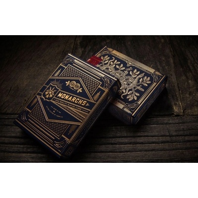 Elegantní a královské hrací karty. Karty Monarchs jsou prvotřídním a luxusním balíčkem karet. Vypadají jako by patřili do královského paláce. Lesknoucí se kovově zlatá linka...