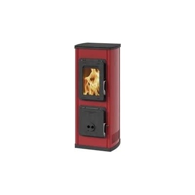 Kompaktní krbová kamna v elegantním vínově červeném smaltu pro vytápění menších prostor, dílen nebo chat.