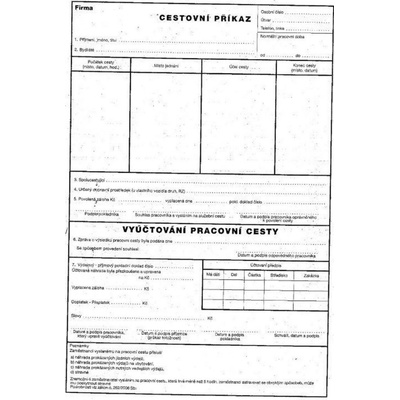 ART. ET235 Cestovní příkaz s vyúčtováním pracovní cesty A4 - tiskopis je vyroben z recyklovaného hlazeného papíru - tisk černou barvou - rozměry: 297x210mm - počet listů: 50l