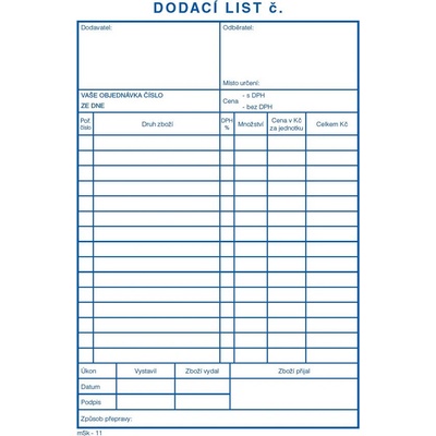 Dodací listy ve formátu A5 jsou ideální pro evidenci a potvrzení dodávek. Lepený blok obsahuje 100 listů vyrobených z NCR (samopropisovacího) papíru