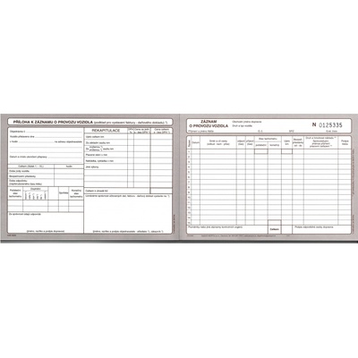 Záznam o provozu vozidla - stazka - nepropisovací - číslovaný - formát A5 na šířku - obsahuje 100 listů - bílý ofset 80 g - tmavě hnědý oboustrnný tisk