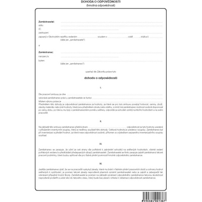 Dohoda o hmotné zodpovědnosti OPTYS 1138 je standardizovaný formulář určený pro uzavření písemné dohody mezi zaměstnavatelem a zaměstnancem o převzetí odpovědnosti za svěřené...