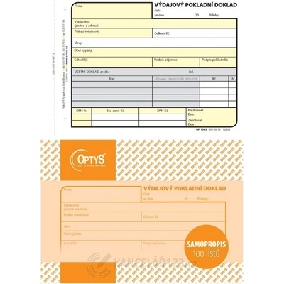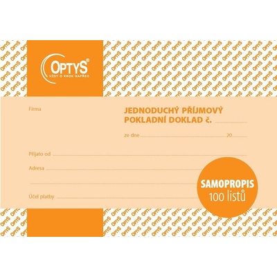 Příjmový pokladní doklad OPTYS 1310 je jednoduchý formulář určený pro evidenci hotovostních plateb v pokladně. Slouží k zaznamenání přijaté částky, účelu platby, data, podpisu...