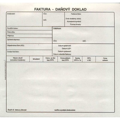 ART. PT200 Faktura daňový doklad 2/3 A4 - tiskopis je vyroben ze samopropisujícího papíru, tisk černou barvou. rozměry: 210 x 198mm, počet listů: 50l , Výrobce: Baloušek Tisk
