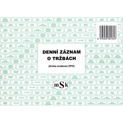 Denní záznam o tržbách mSk 165.Denní záznam o tržbách v členění dle sazeb DPH, nepropis sešit A4 - 20 listů.