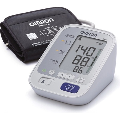 Omron M3 Comfort je přesný tlakoměr s detekcí fibrilace síní, Intelli manžetou, síťovým zdrojem, pamětí pro 2 uživatele a 5letou zárukou pro bezpečné domácí měření.