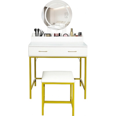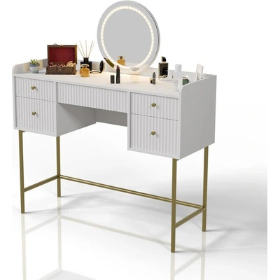 Tento elegantní kosmetický stolek obsahuje velké zrcadlo s 10 žárovkami, které lze snadno nastavit pomocí tří různých režimů osvětlení. Kosmetický stolek nabízí na své desce a...