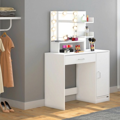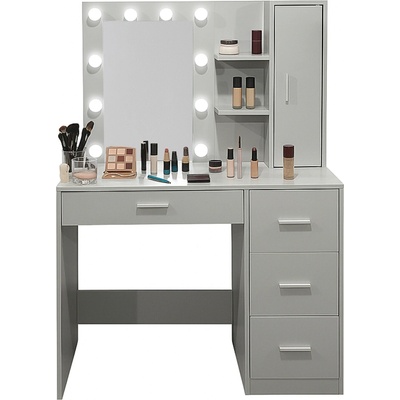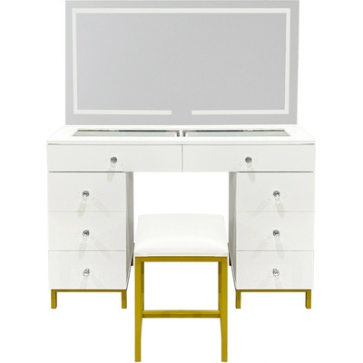 Toaletní stolek s devíti žárovkami, které obklopují zrcadlo toaletky. Stmívatelné žárovky vám pomohou s líčením, ať už je ráno nebo večer. Stolek má dostatek úložného prostoru -...