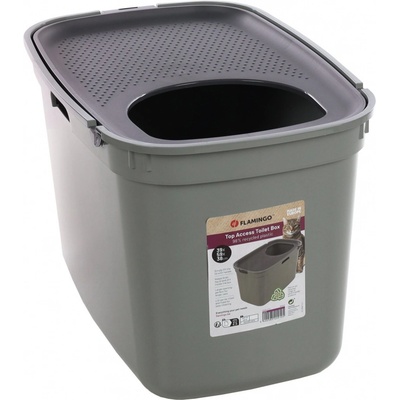 Popis Představujeme olivově zelenou kočičí toaletu s vrchním vstupem. Je vyrobena z 98 % z recyklovaného plastu. Disponuje bezešvou základnou a boky pro zabránění úniku....