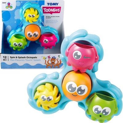 Toomies Šplouchající chobotničky do koupele Tento výrobek je vyroben značkou Tomy. Barevný spinner se pomocí přísavky připevní na bok vany nebo na jakýkoli rovný povrch. Má...