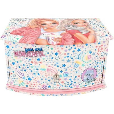 Kvalitně zpracovaná dívčí šperkovnice značky Top Model vyrobená z pevného kartonu se zrcátkem. Šperkovnice nabízí dostatečný vnitřní prostor pro přehledné uložení všech šperků!...
