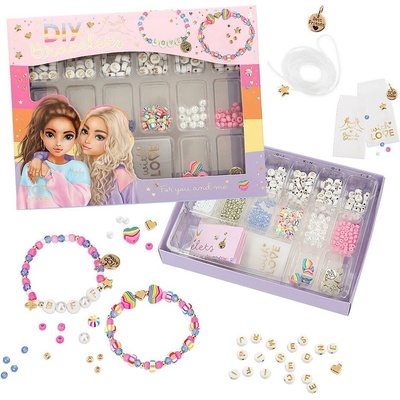 Krásná kreativní sada na výrobu náramků mimořádně oblíbené značky Top Model. Vytvoř sobě nebo tvé nejlepší kamarádce parádní náramek!Balení obsahuje spousty nejrůznějších malých barevných korálků, písmenkových korálků, zlatých přívěsků a 2 metry gumičky.Vhodné pro děti...