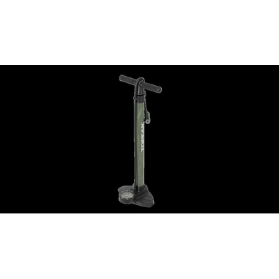 Velkoobjemová podlahová pumpa. Velkoobjemová podlahová pumpa primárně určená pro horská kola. Ve střední části pumpy je umístěn 3” analogový manometr pro kontrolu tlaku v pláštích. Hlavice pumpy zvládá galuskový, auto i Dunlop ventilek a velká ocelová základna...