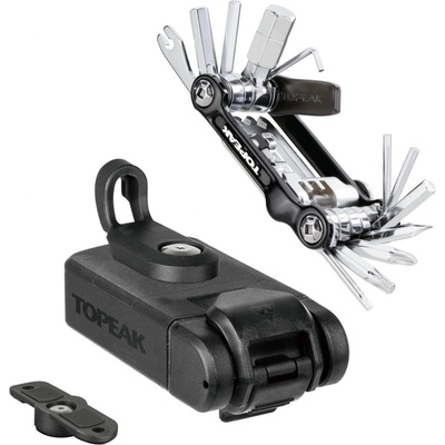 Malé skládací nářadí od Topeak. Kvalitní zpracování a materiály, nízká hmotnost a velikost. Upevňuje se pod držák Topeak Cage Mount, Frame Mount nebo jako klasický držák na...
