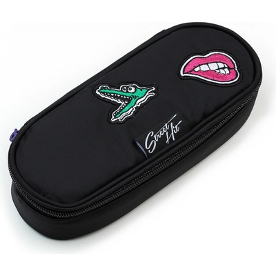 Oválný penál pro všechny potřebnosti ocení spíše starší školáci. Uvnitř pouzdra je síťová kapsička na zip a klopa, na níž jsou umístěny gumičky pro uchycení celkem devíti tužek...