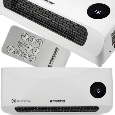 Nástěnný programovatelný ventilátorový ohřívač. - 2 stupně ohřívání: 1000 W / 2000 W - oscilující klapka proudění vzduchu - elektronický termostat - 12 h časovač vypnutí -...